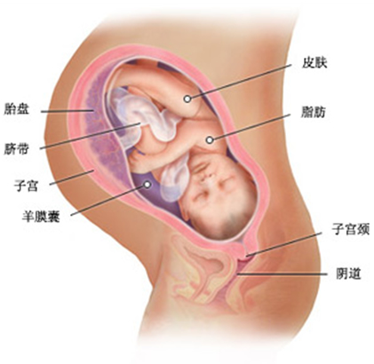现在胎儿身上原来覆盖着的一层细细的绒毛和大部份白色的胎脂逐渐脱落、消失,胎儿的皮肤变得光滑。这些物质及其他分泌物也被胎儿随着羊水一起吞进肚子里,贮存在他的肠道中,变成黑色的胎便,在他出生后的一两天内排出体外。